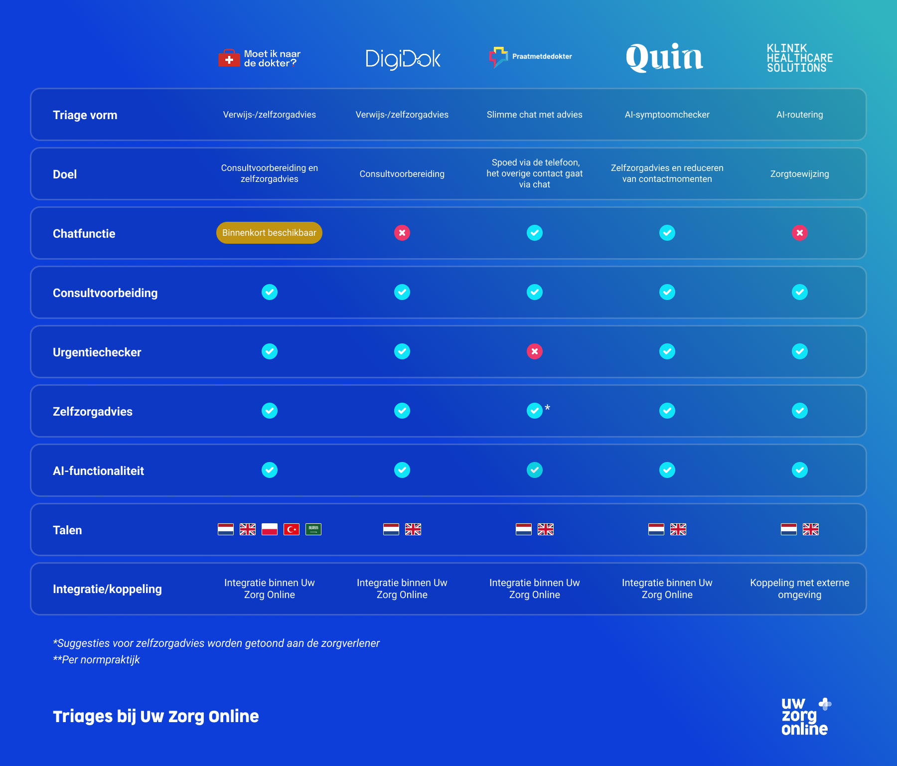 De triage-tools die we via Uw Zorg Online aanbieden, hebben allemaal een koppeling of integratie met:
